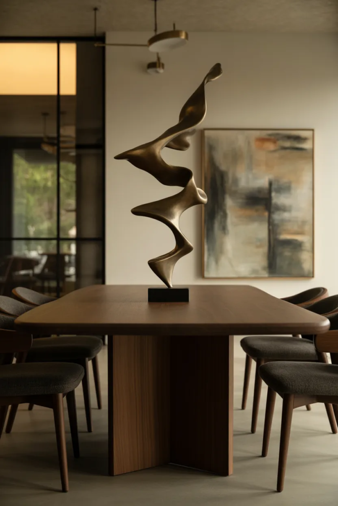 Choose sculptures made from metal, ceramic, or stone for an elegant look. Keeping the rest of the table simple ensures the sculpture remains the focal point.
